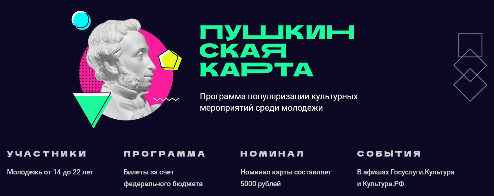 Переходите на сайт и выбирайте культурную программу себе по вкусу.