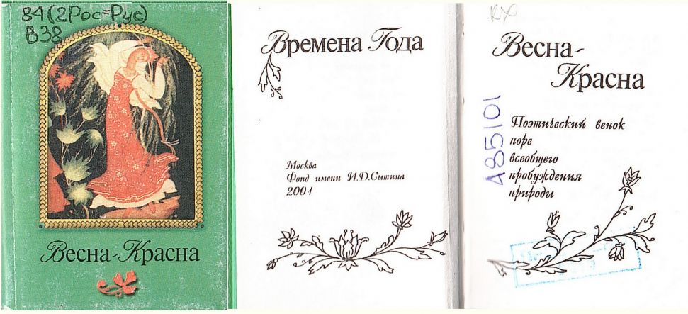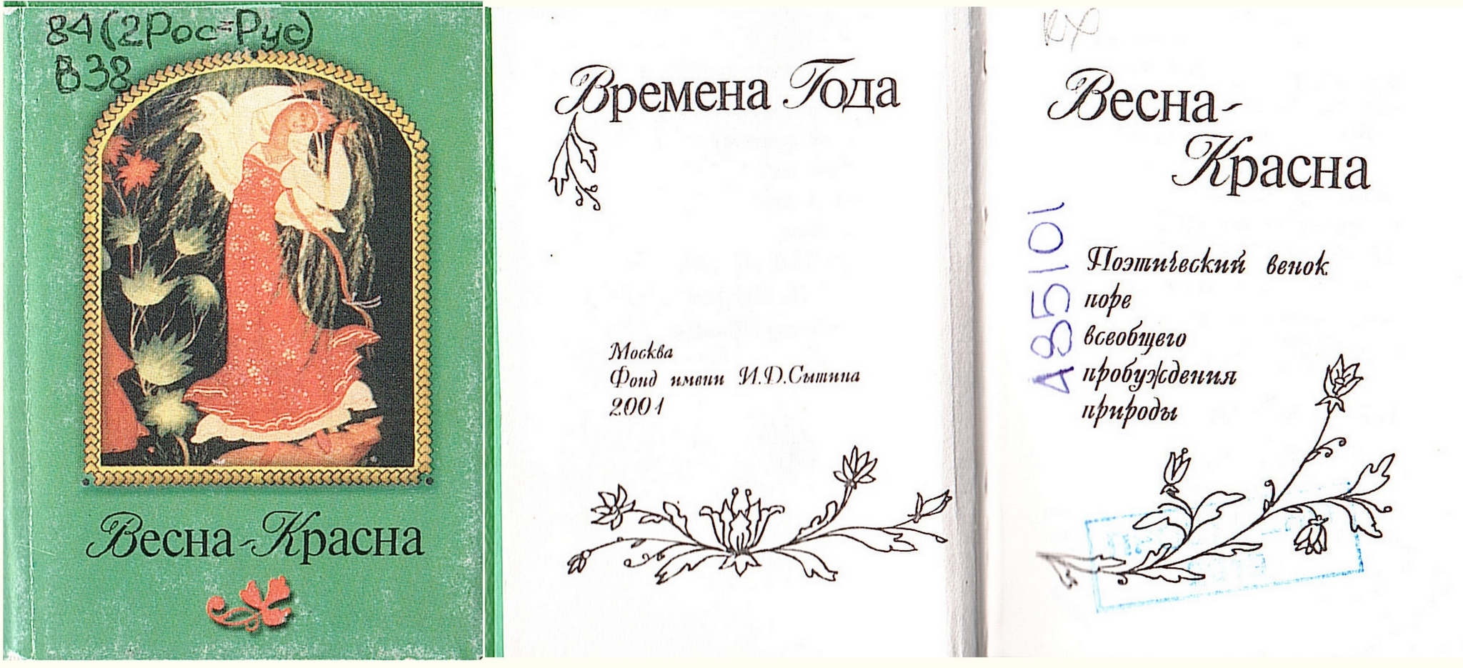 Весна-красна: поэтический венок поре всеобщего пробуждения природы / составление, предисловие В. И. Десятерика. – Москва, 2001. – 240 с. – (Времена года).