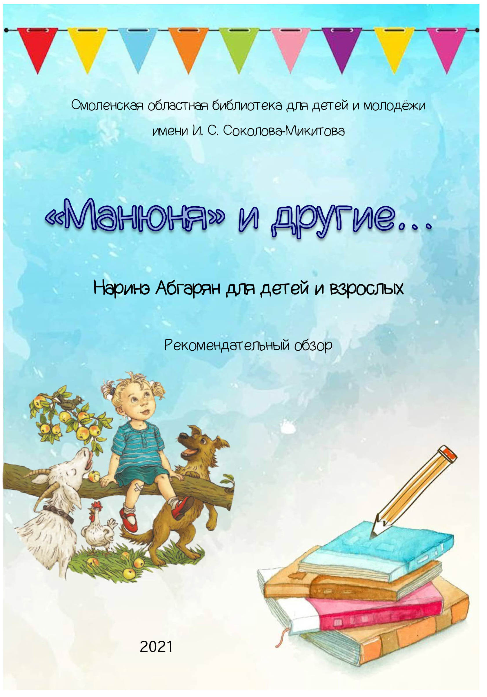 Данное издание носит информационный характер. Его цель – познакомить библиотекарей, работающих с детьми и молодёжью, с литературным творчеством современного писателя Наринэ Юрьевны Абгарян. Рекомендательный обзор об авторе и её книгах составлен по материалам, взятым из разных источников, размещённых в открытом доступе в сети Интернет, а также из библиографического справочника «Живые лица. Навигатор по современной отечественной детской литературе» (Москва, 2014). |