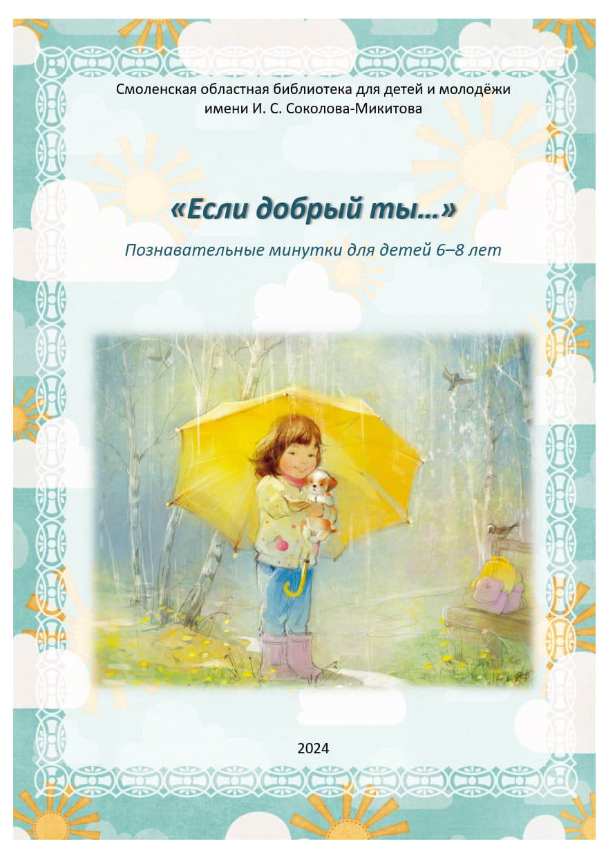 Экологический календарь 2019: методико-библиографические рекомендации / Смоленская областная библиотека для детей и молодежи имени И.С. Соколова-Микитова; [сост. К.Ф. Конопелькина, И.Д. Петрова; техн. ред. А.А. Титова, Е.Б. Саидова; ред. В.С. Матюшина; отв. за выпуск С.А. Петрищенкова]. – Смоленск: [б. и.], 2017. – 54 с.Скачать |