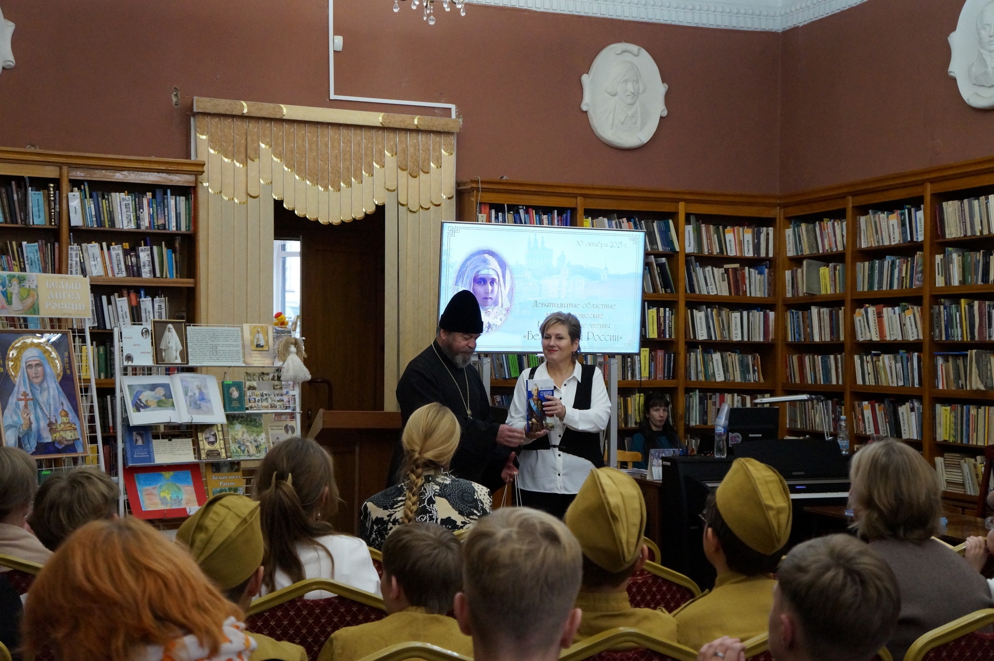 Завершились чтения вручением грамот и подарков. Отец Михаил преподнёс директору библиотеки подборку книг для кафедры православной литературы.