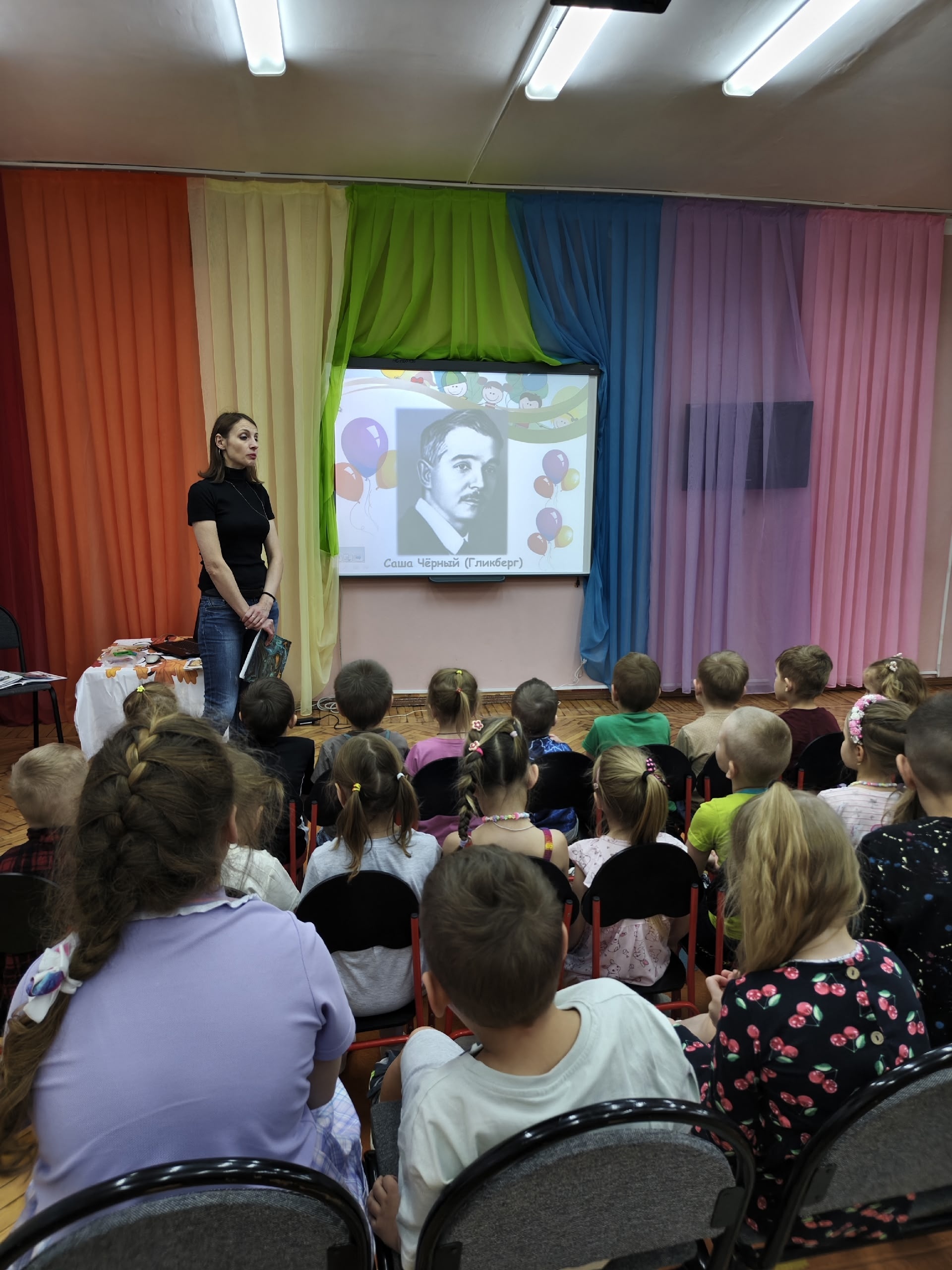 Библиотекарь рассказала ребятам, что Саша Чёрный ещё в детстве научился превращать обычные моменты жизни в удивительные истории — и это волшебство стало его профессией. Он видел чудо в каждом живом существе, потому его стихи населены забавными животными. Юные читатели с удовольствием слушали «Живую азбуку», «Про кота», «Про девочку, которая нашла своего мишку» и «Бобину лошадку», а затем с азартом поиграли в литературные игры.