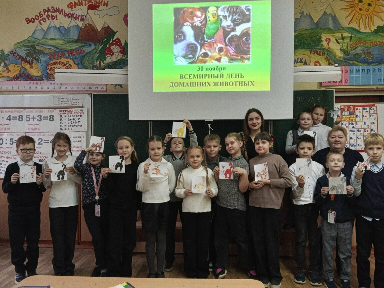 Учащиеся начальных классов говорили о любимых питомцах и пользе; узнавали, как правильно ухаживать за зверюшками; отгадывали загадки и собирали пазлы; изображали животных в весёлой игре.
