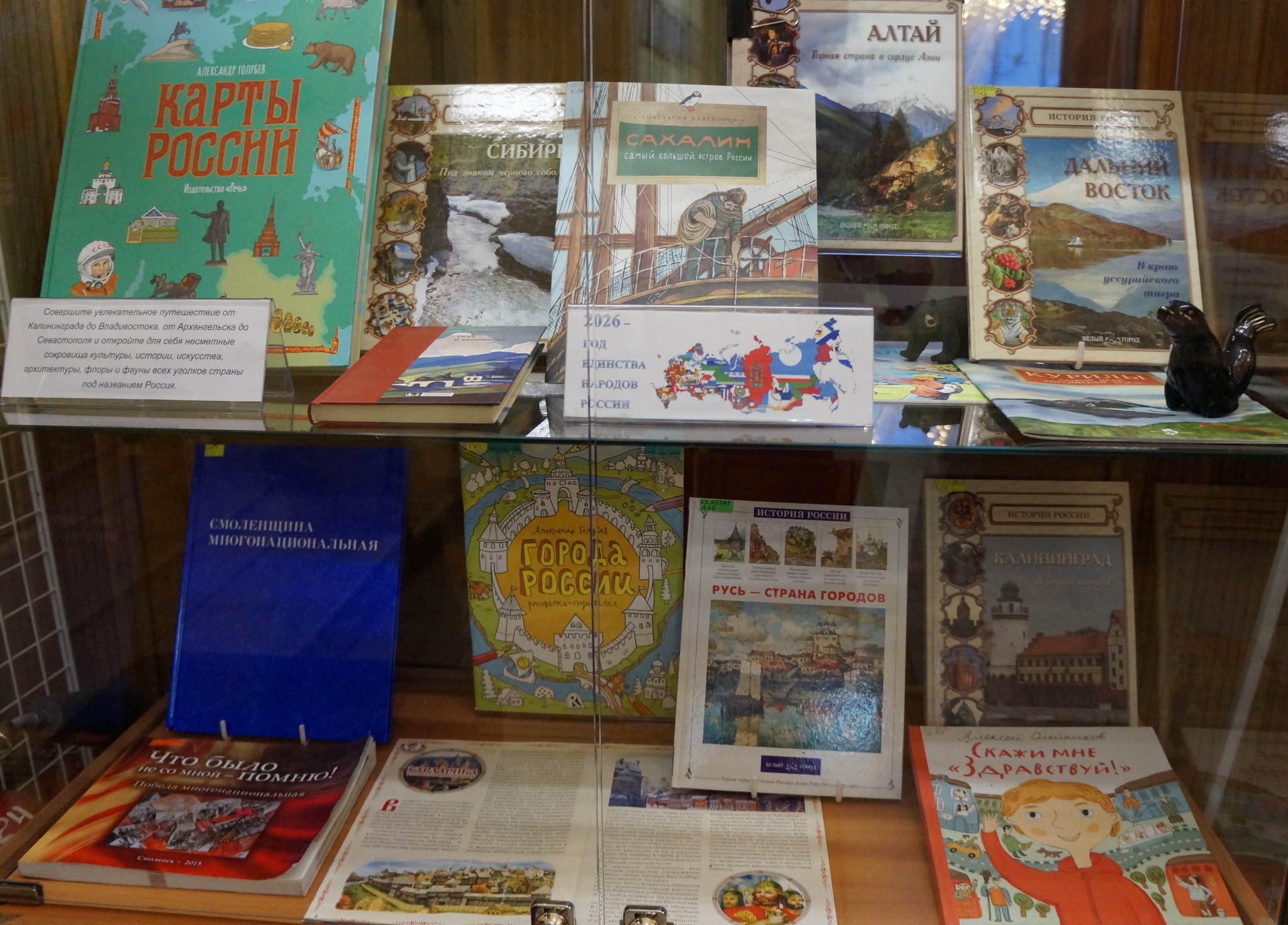 Представленные здесь книги приглашают совершить заочное путешествие по нашей стране, где веками проживают народы разных национальностей. Яркие издания, статьи из периодики увлекательно рассказывают об истории и природных богатствах России, республиках и городах, традициях и быте, обычаях и культуре народов, проживающих на одной шестой части суши планеты Земля; русском языке как средстве межнационального общения и беспрепятственном разговоре любого жителя на родном языке; о религиях, которые каждый вправе выбрать по своему усмотрению…