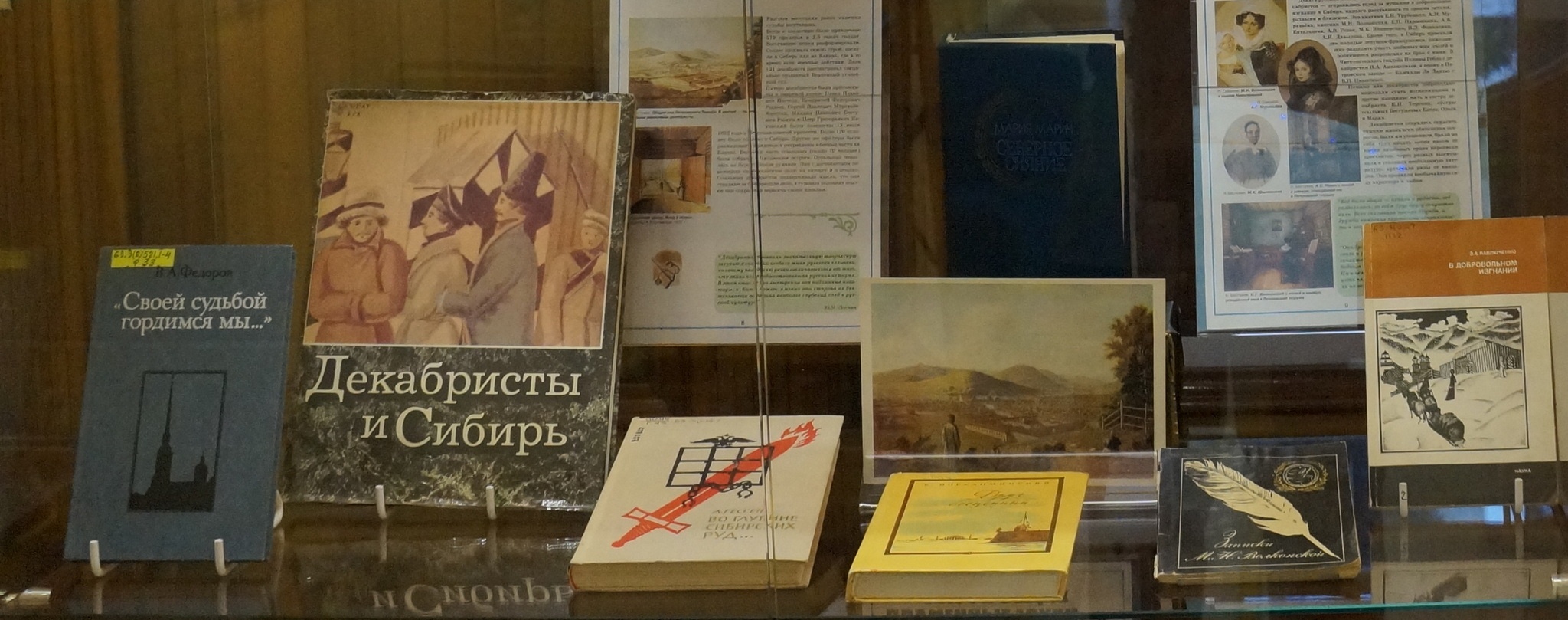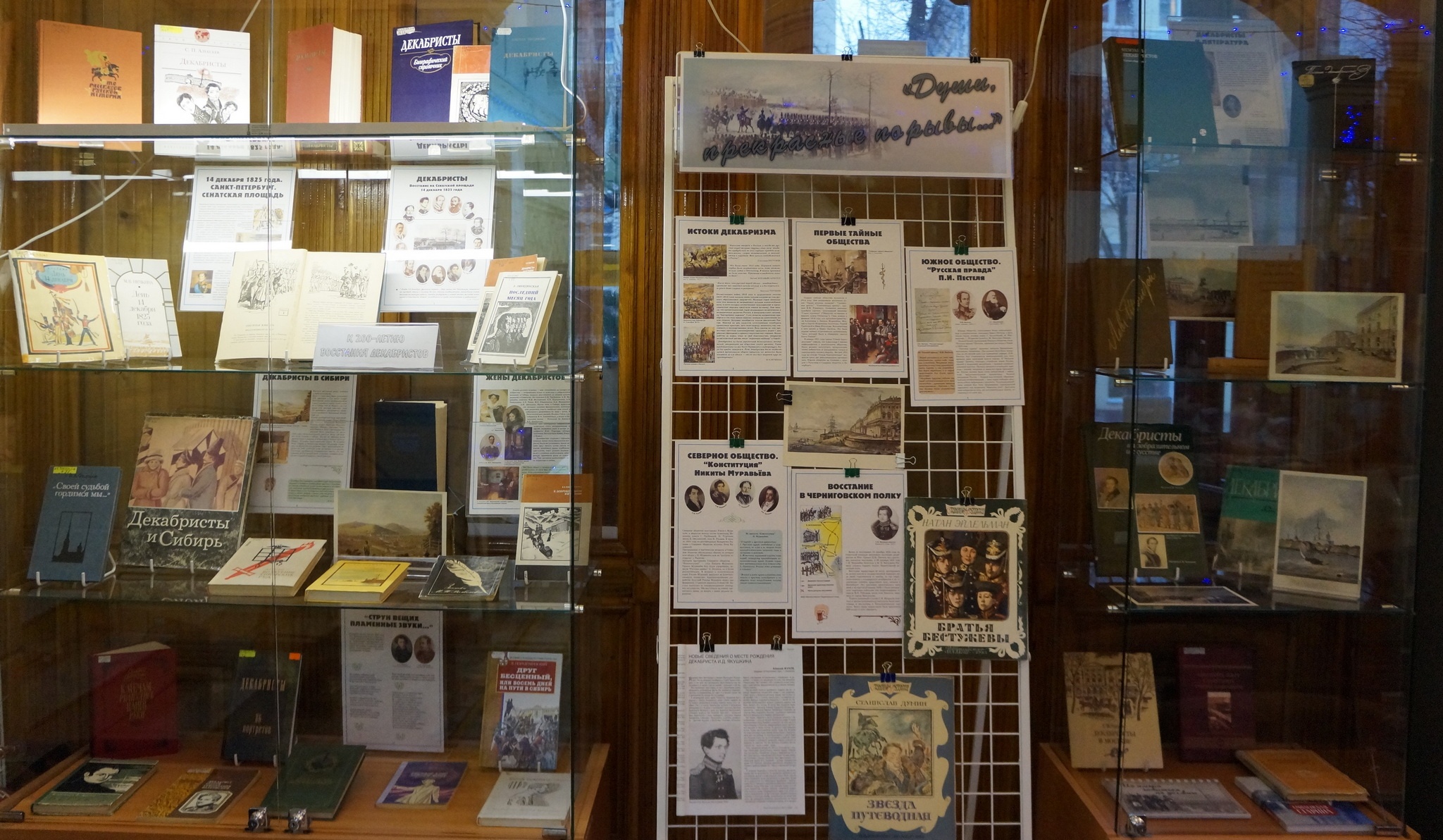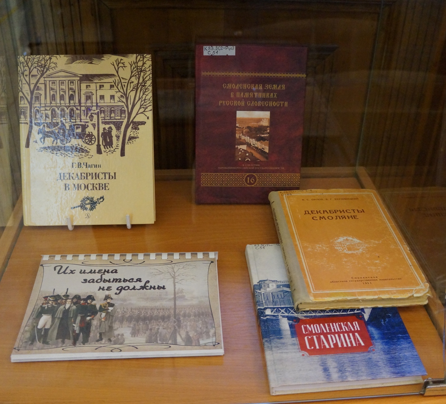 Книги разных лет, авторов разных поколений, адресованные читателям разного возраста, рассказывают о патриотическом подъёме в России после победы в Отечественной войне 1812 года, о восстании на Сенатской площади 14 декабря 1825 года в Петербурге. Здесь же произведения декабристов и литература о них как героях своего времени; альбомы с живописными образами участников восстания; материалы о декабристах-смолянах.