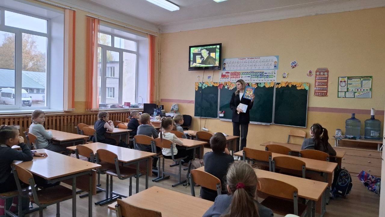 Сотрудник Смоленской областной библиотеки для детей и молодёжи имени И. С. Соколова-Микитова познакомила второклассников с биографией и творчеством автора, который много лет проработал учителем.