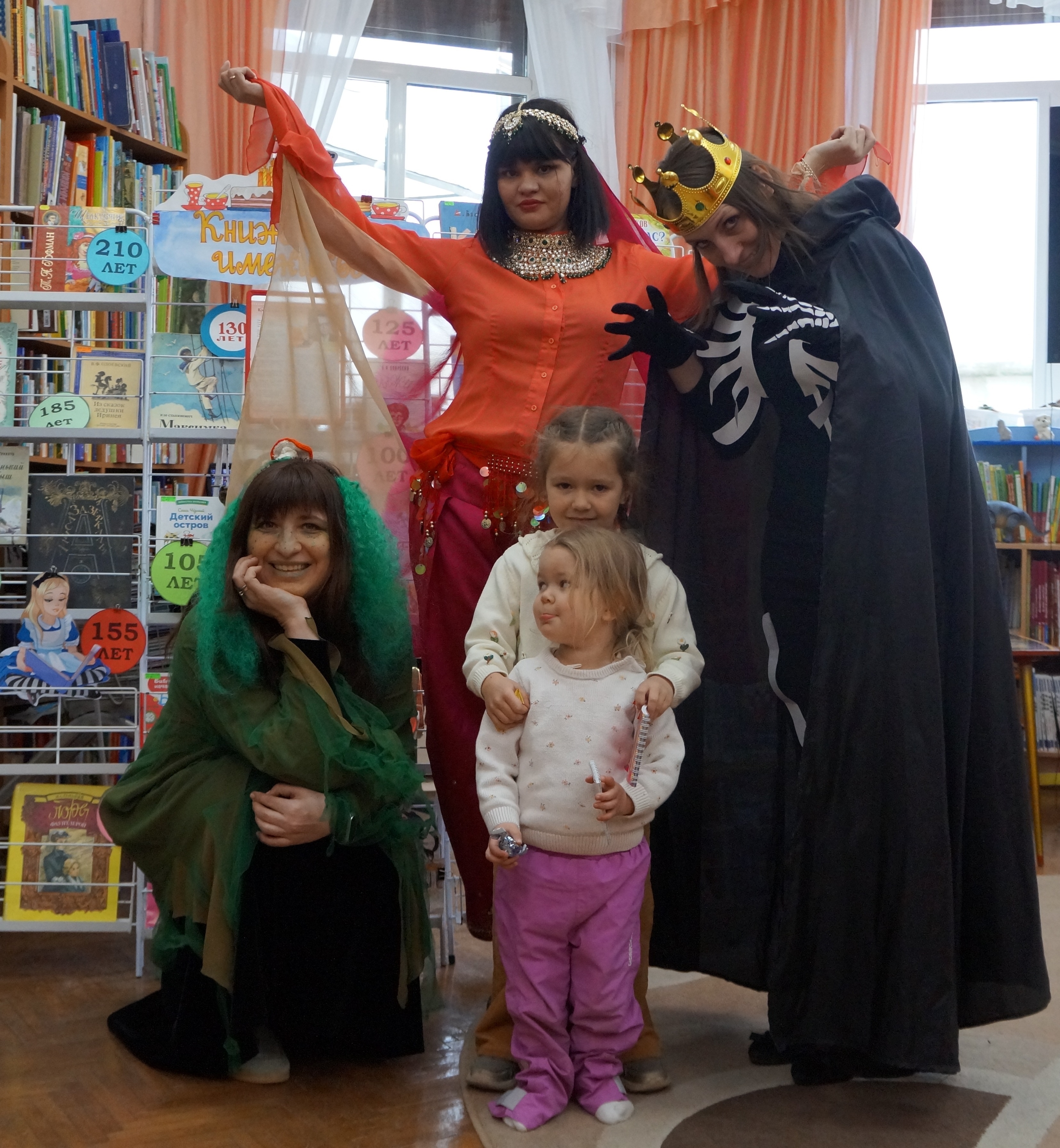 На абонементах юных читателей и их родителей встречали не «обычные библиотекари», а настоящие сказочные персонажи: Кикимора, Кощей Бессмертный, Шамаханская царица, Золушка вместе со своей строгой Мачехой и Кот Учёный… Все они не просто создавали праздничную атмосферу, но и добросовестно выполняли библиотечную работу: принимали и выдавали книги, помогали выбирать литературу, советовали, что почитать на каникулах…