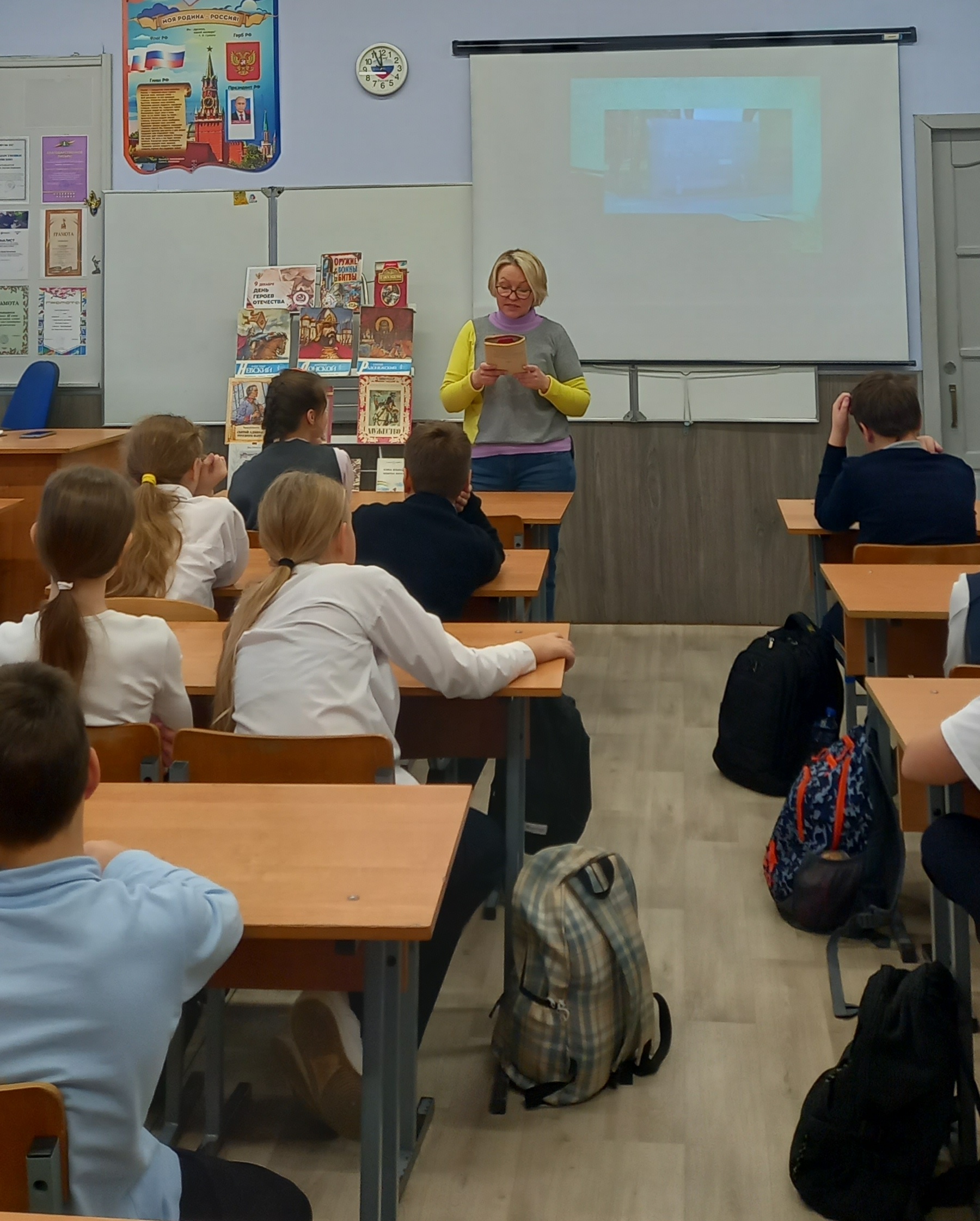 Особенно сильное впечатление на детей произвели рассказы из книг Сергея Алексеева и кадры документальной хроники времён Великой Отечественной войны. Ребята внимательно смотрели на подлинные съёмки тех лет, представляя, как жили и сражались их прадеды.