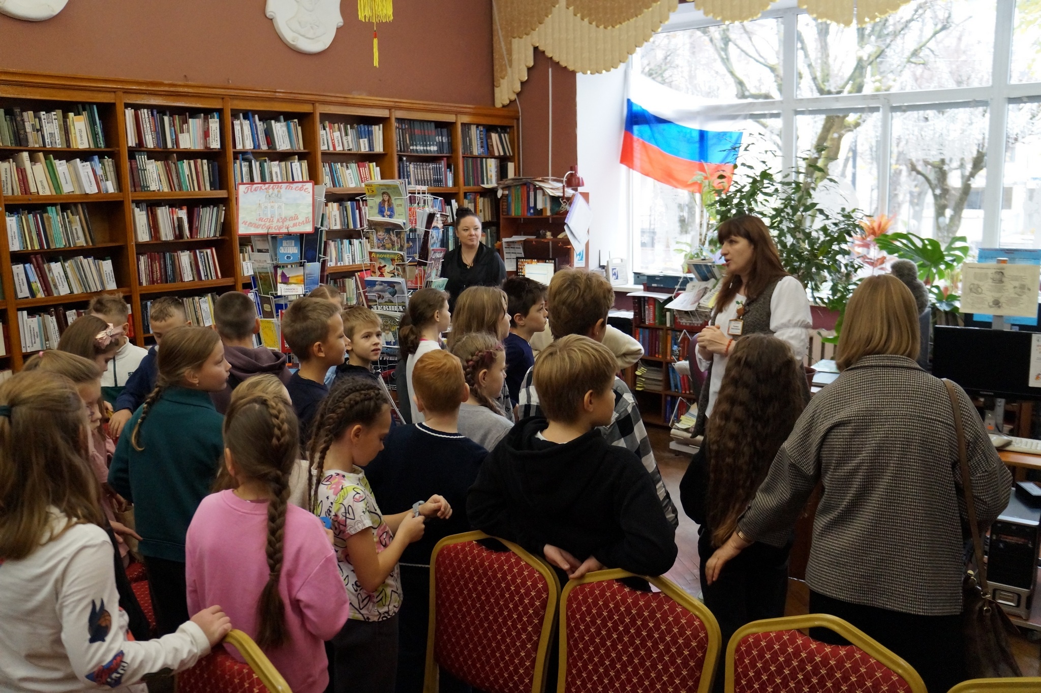 В путешествие по «Мудрому царству — библиотечному государству» отправились ученики начальных классов гимназии имени Н. М. Пржевальского, частной школы TOP IT SCHOOL и лицея № 1 имени академика Б. Н. Петрова. Ребята познакомились с историей библиотеки и её отделами, освоили правила пользования.
