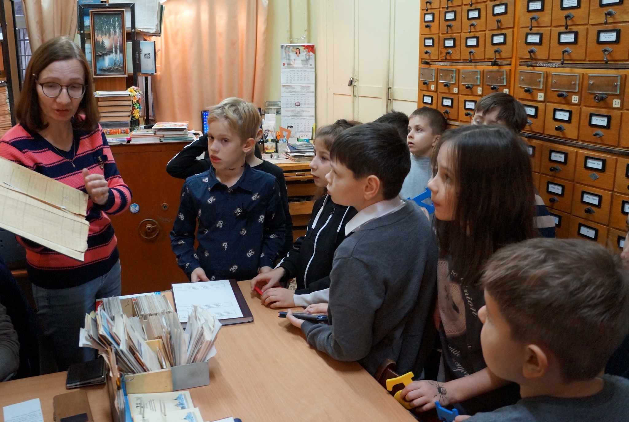 Школьники побывали в закрытых для читателей зонах — например, в отделе комплектования, обработки и книгохранения. Там они узнали, какой непростой путь проходит книга до появления на полках. Особый интерес вызвали редкие и необычные издания: столетние детские энциклопедии; тактильные и «говорящие» книги; современные интерактивные издания, оживающие благодаря «волшебному карандашу» и технологиям дополненной реальности.