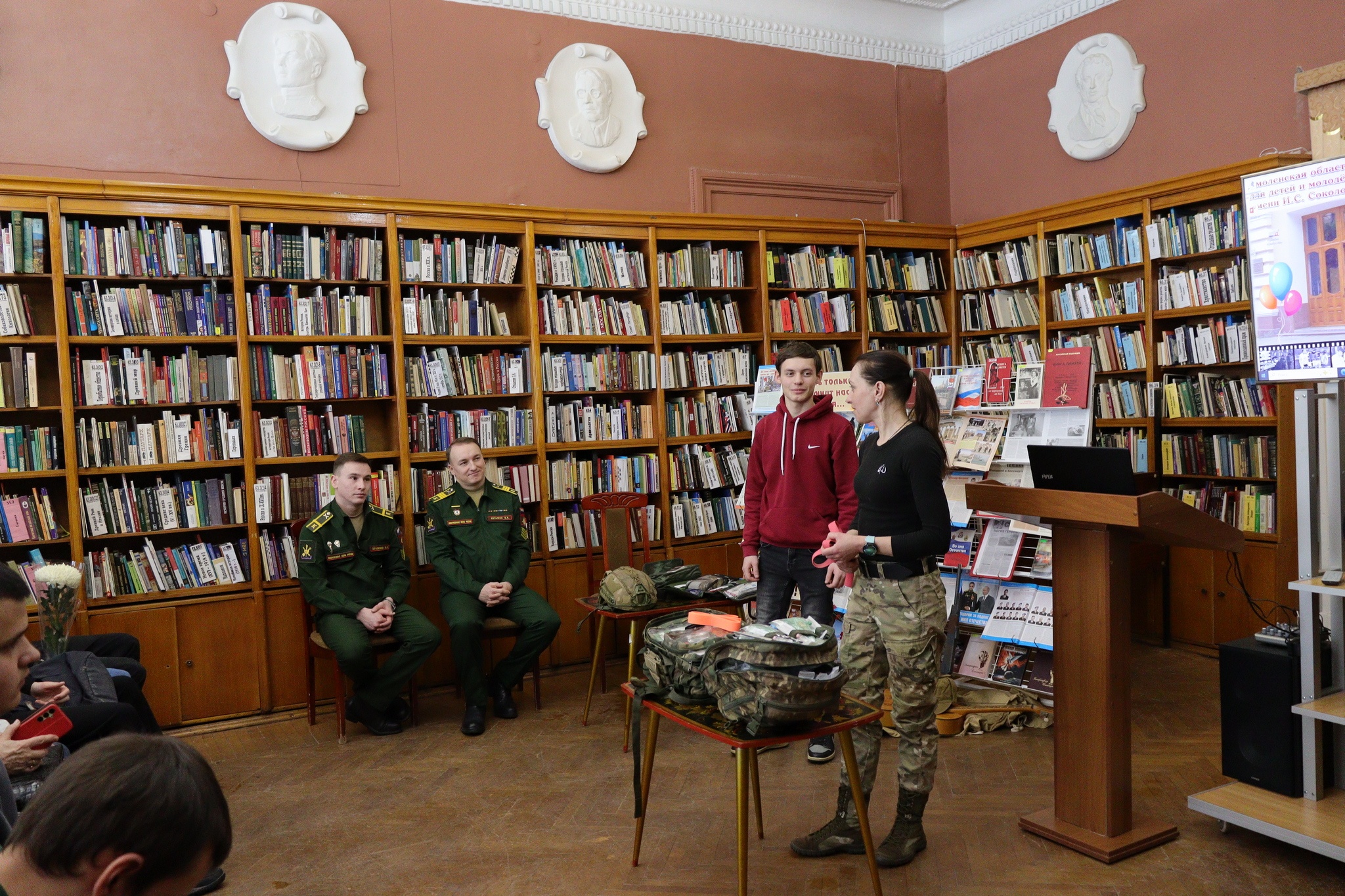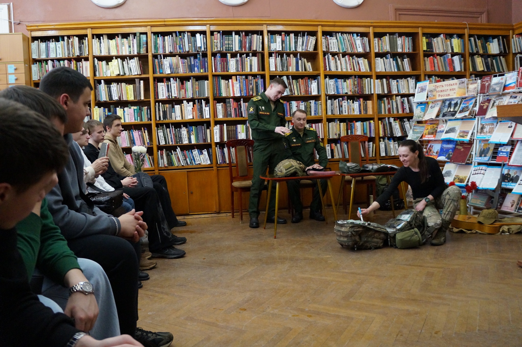 Накануне Дня защитника Отечества в уютном зале Областной библиотеки для детей и молодёжи прошла незабываемая встреча с участниками специальной военной операции – курсантами Смоленской академии войсковой ПВО Вячеславом Кузьминым, Иваном Герасимовым и тактическим медиком, санинструктором Мариной Никитенковой.