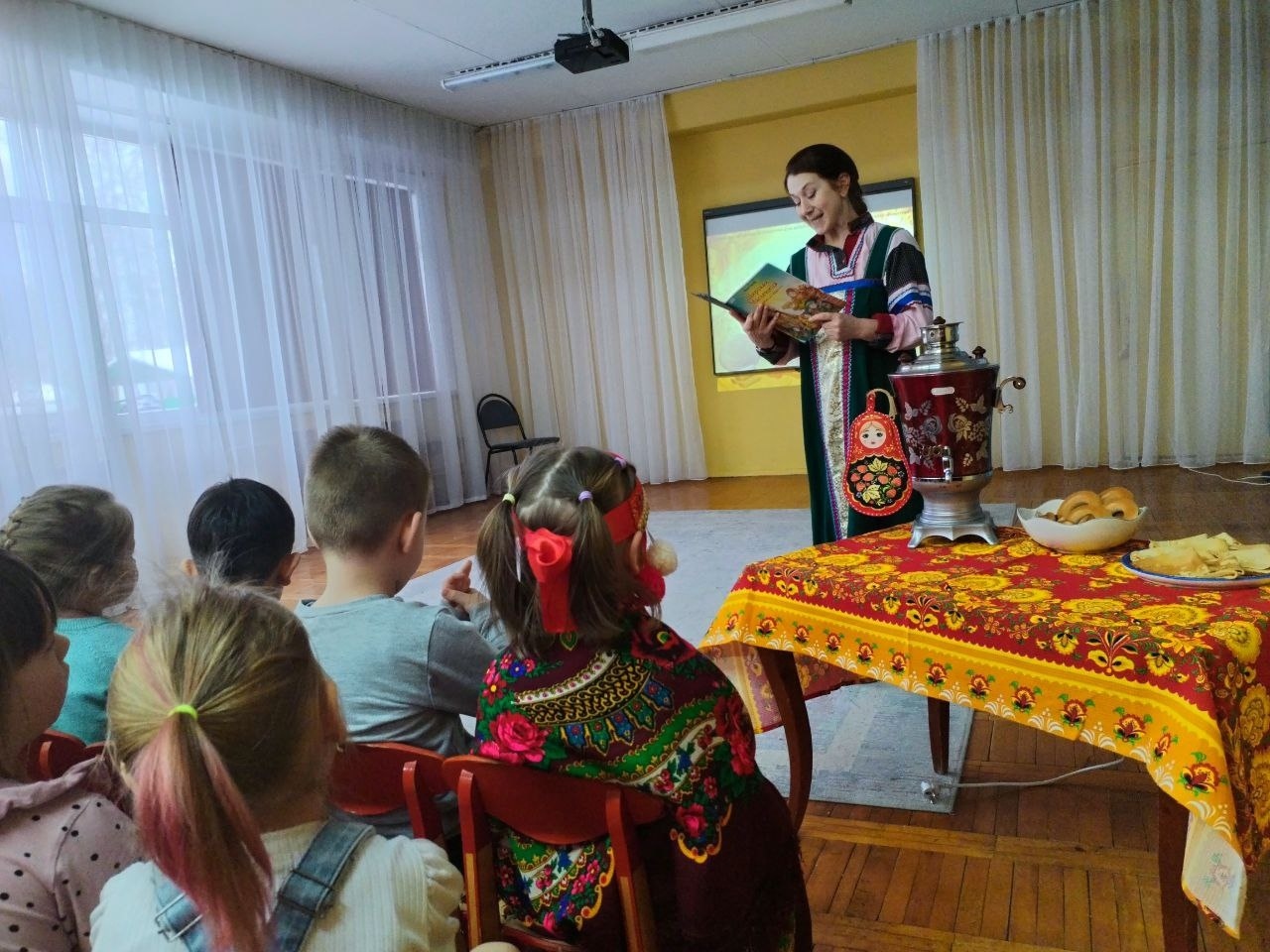 С 16 по 18 февраля в детских садах «Ивушка», «Берёзка», «Снежинка», «Садко» прошли игровые программы «Русская, старинная, румяная, да блинная», подготовленные сотрудниками Смоленской областной библиотеки для детей и молодёжи имени И. С. Соколова-Микитова.